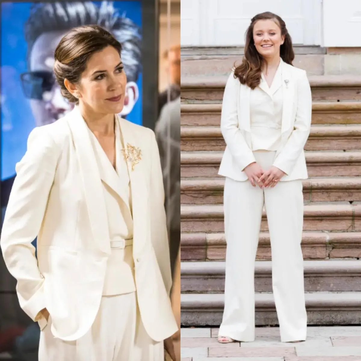 Принцеса Мері одягнула білі костюмні штани на королівські заручини в Стокгольмі в травні 2017 року. Цього року її дочка Ізабелла одягнула штани своєї мами.