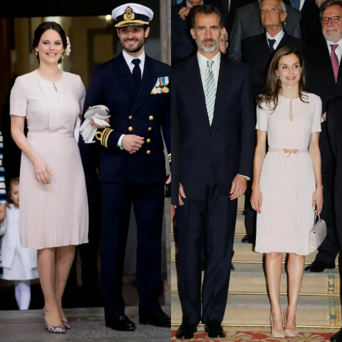 Принцеса Софія одягла рожеву сукню Hugo Boss на службу у Королівському палаці у Стокгольмі у квітні 2016 року. Через рік цю сукню одягнула королева Іспанії Летиція, додавши до плаття пояс.