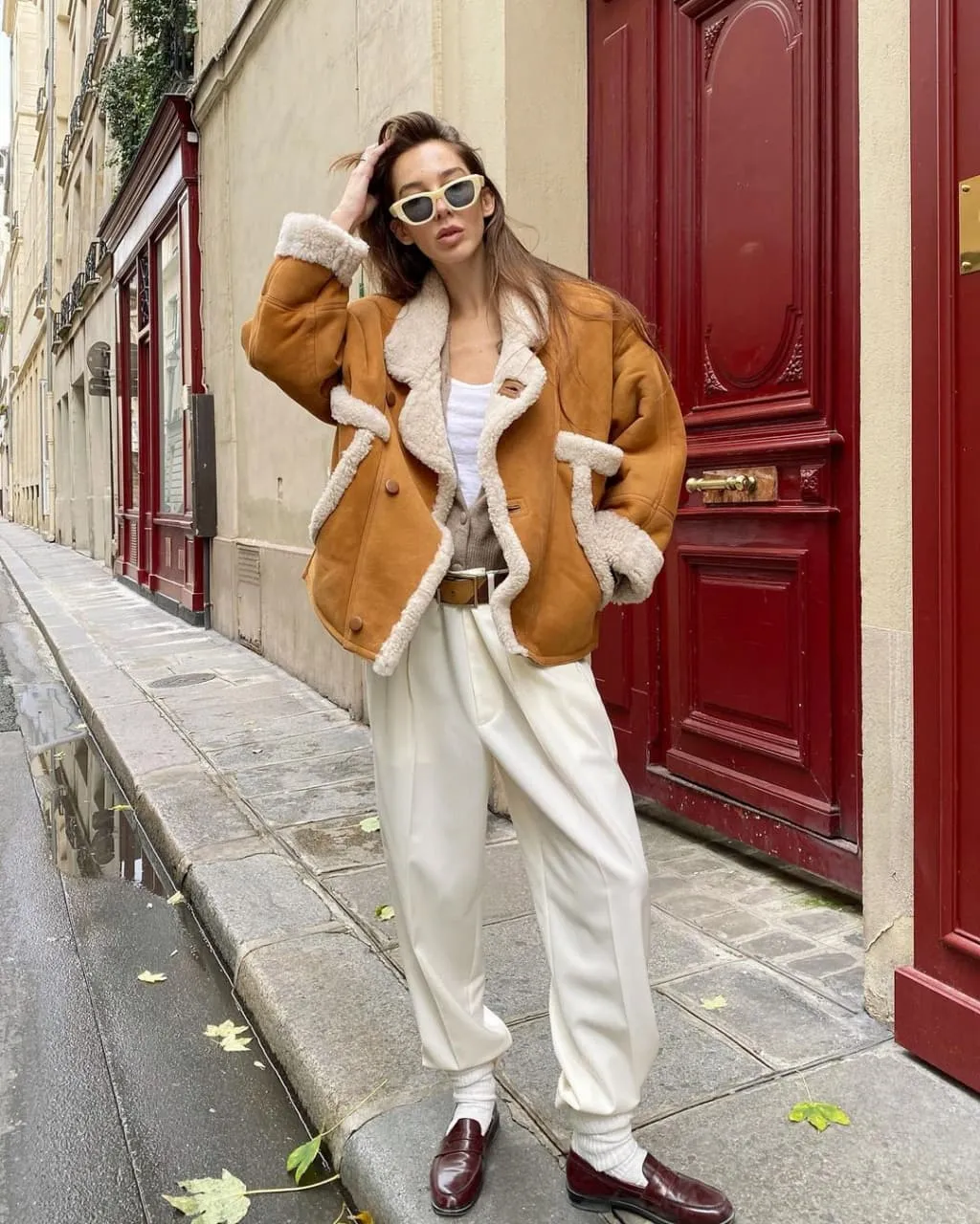 Стильні комбінації з дублянкою / Фото з Pinterest