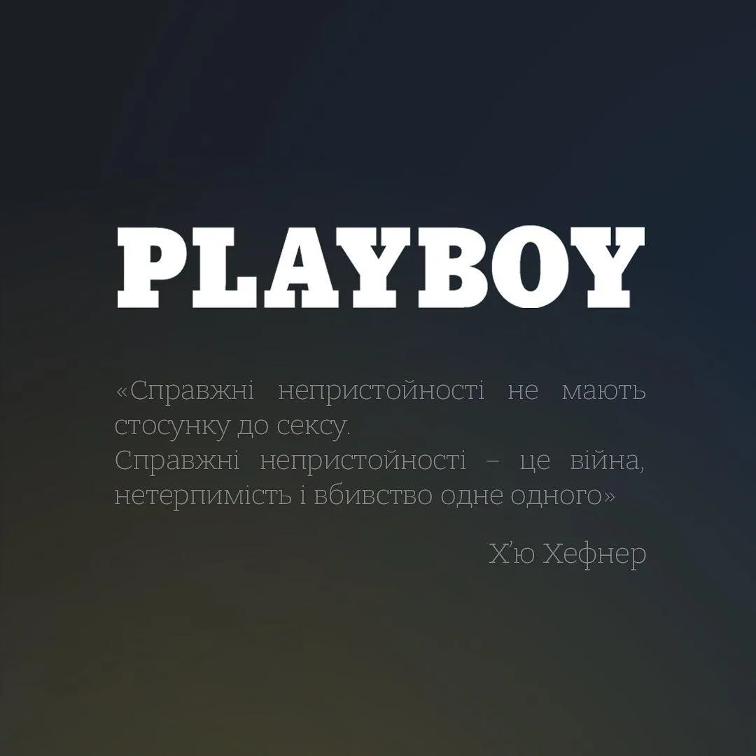 На своїй інстаграм-сторінці редакція прокоментувала засновника Playboy Г'ю Гефнера: "Справжні непристойності нем ають стосунку до сексу. Справжні непристойності – це війна, нетерпимість і вбивство одне одного".