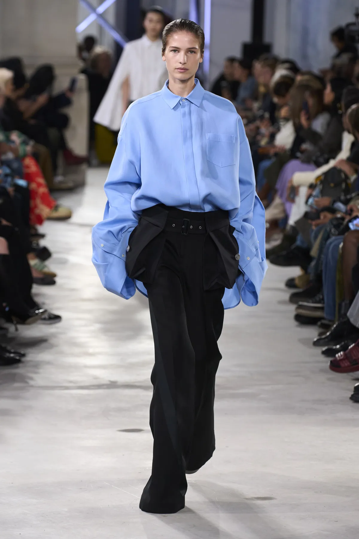 Серед штанів вже кілька сезонів домінують саме широкі варіанти у стилі палаццо. Поєднуйте широкі штани з лонгслівами, сорочками чи блузами.