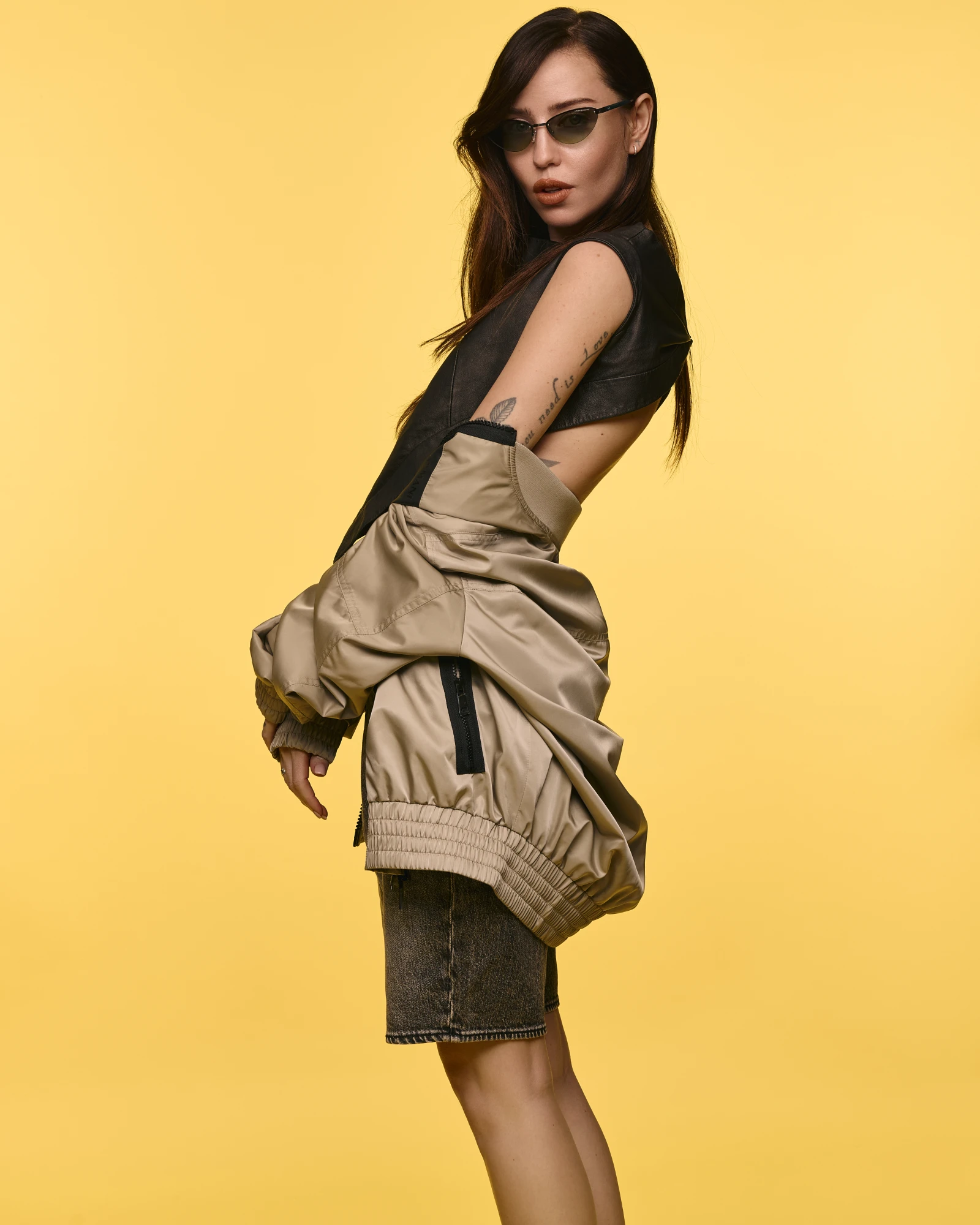 Тут я така, якою ще ніколи ніхто мене не показував: абсолютно незвичний для мене мейк, нова форма брів, інший проділ… Така, на мій погляд, трішечки ugly beauty (потворна краса, – Fashion 24). Цей експеримент захопив мене на знімальному майданчику, і я повністю йому віддалася. Для мене ця зйомка супермодна й суперактуальна,