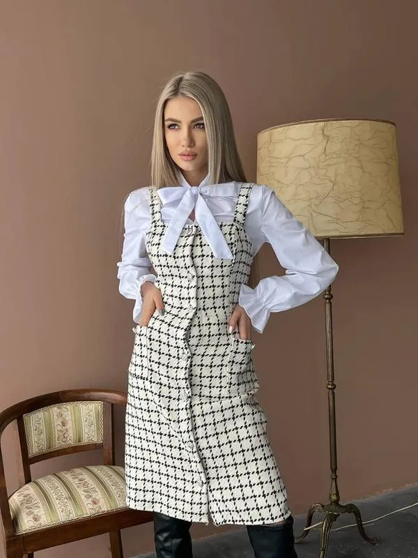 Краще доповніть низ штанами палаццо, спідницею міді з атласу або матовими шкіряними штанами. Гарно виглядає поєднання сарафану з сорочкою або вибір мінімалістичної лляної сукні.