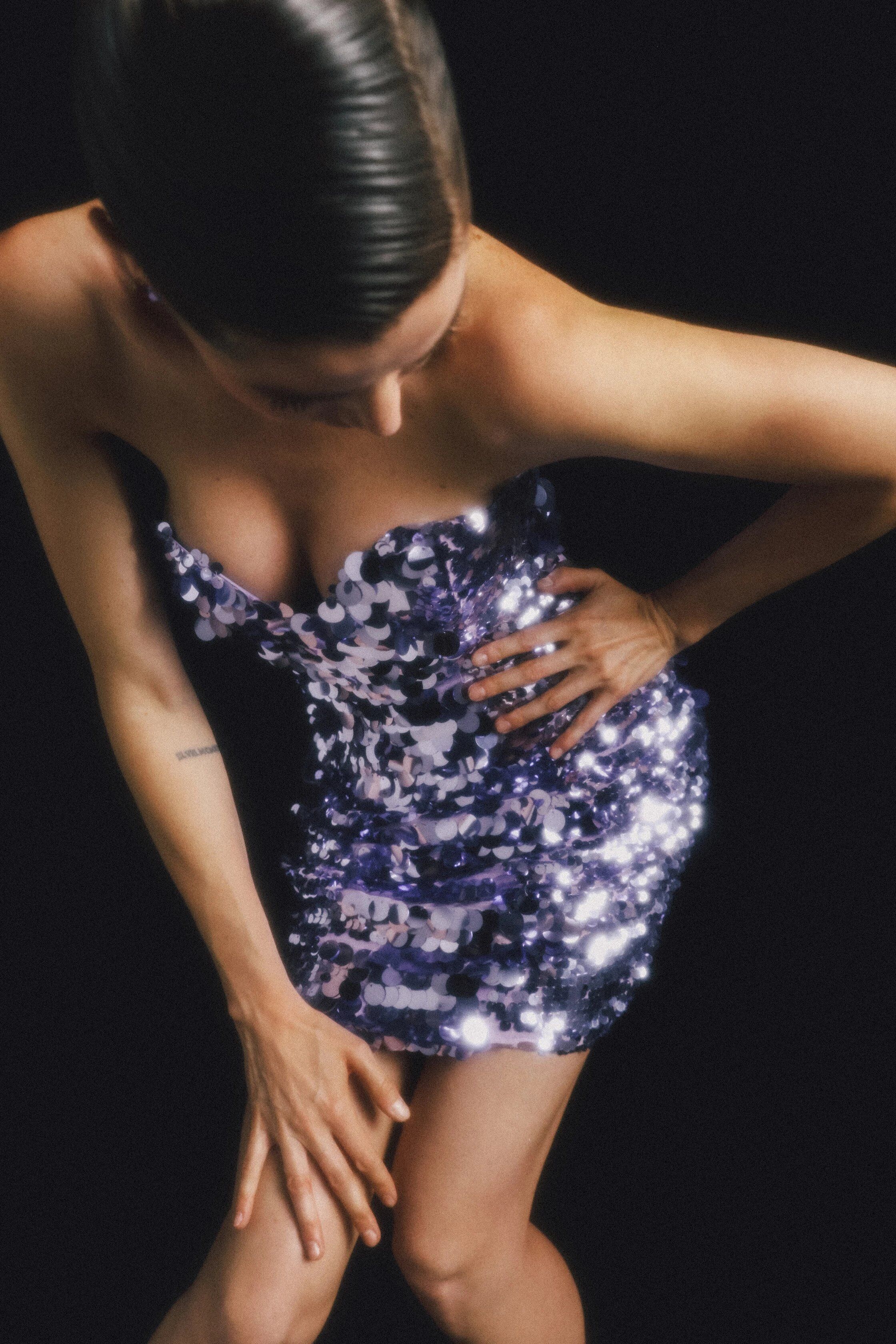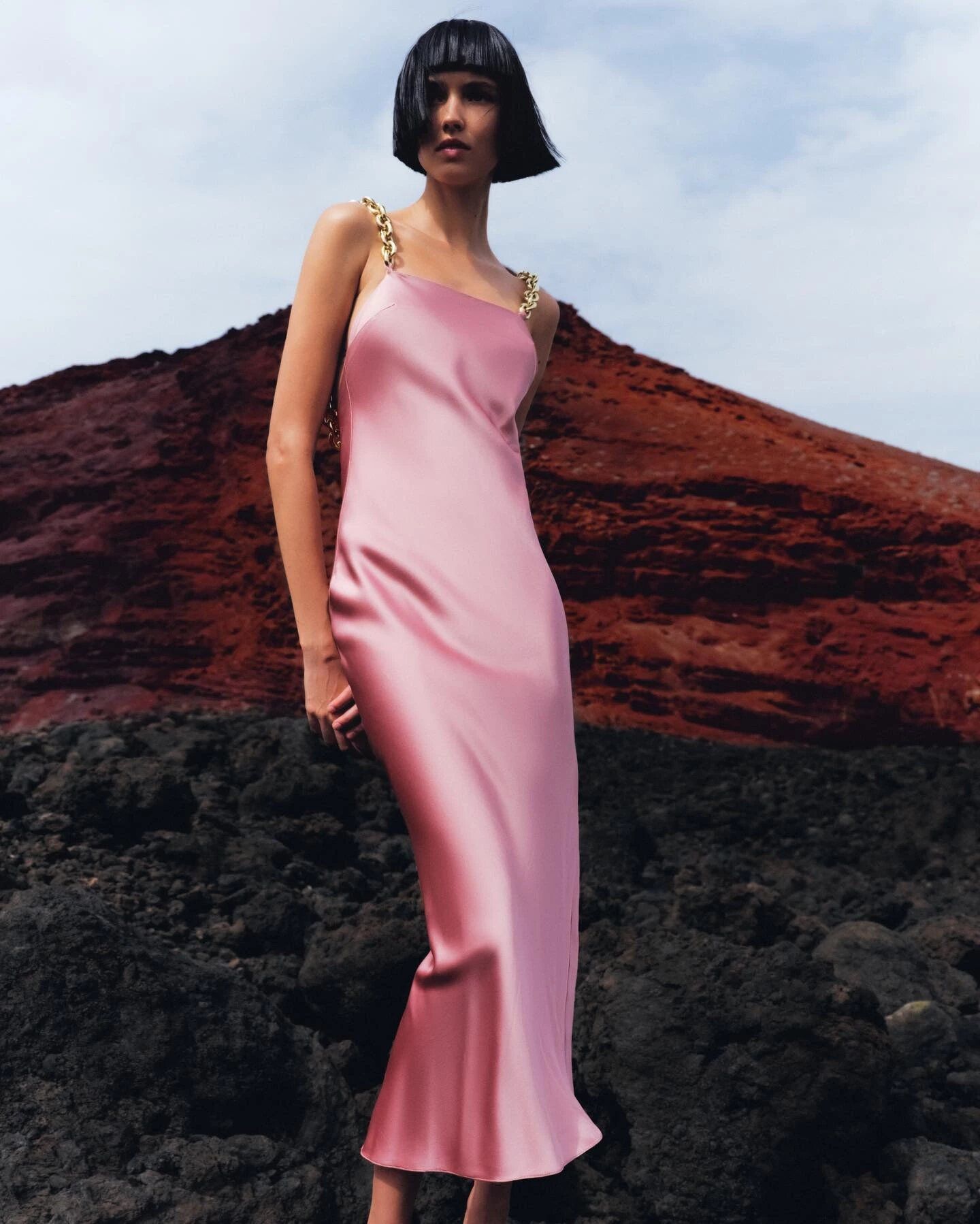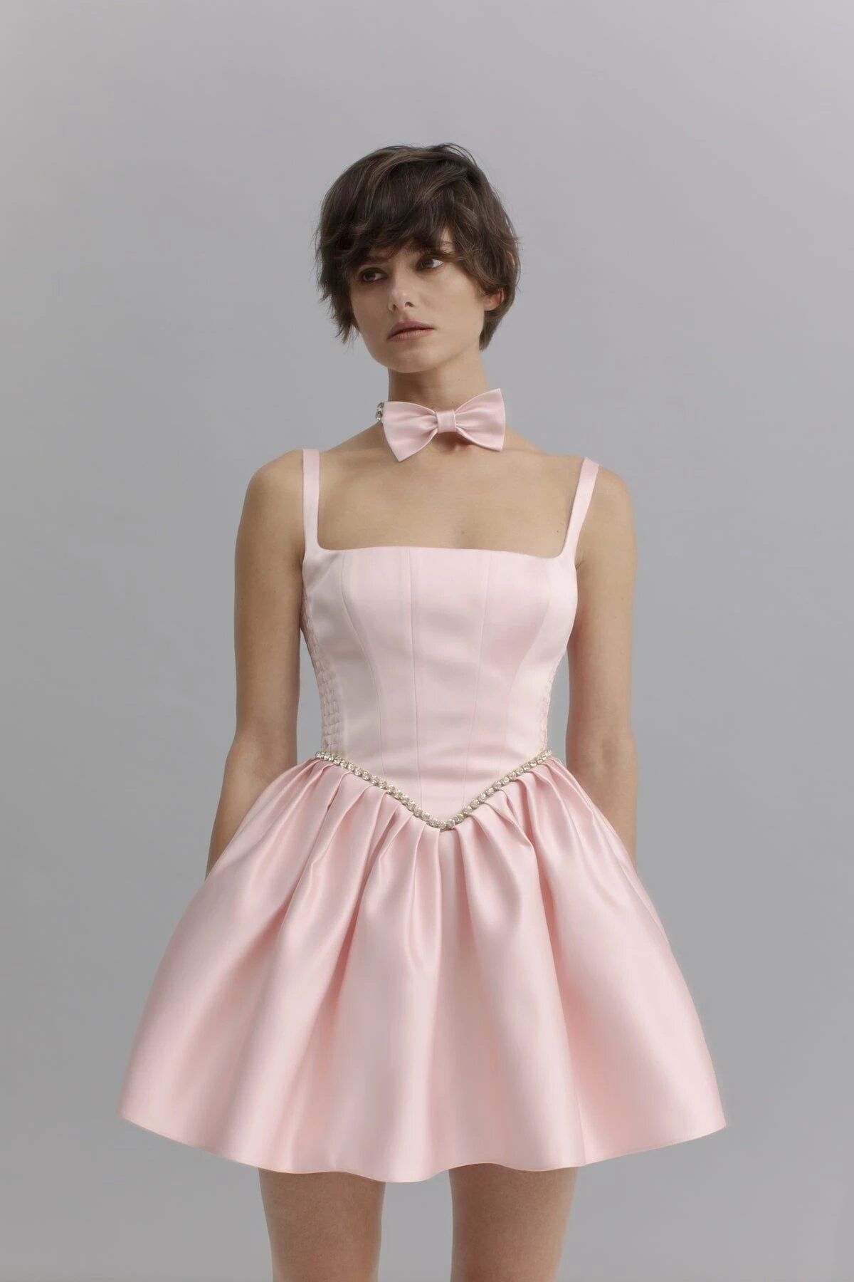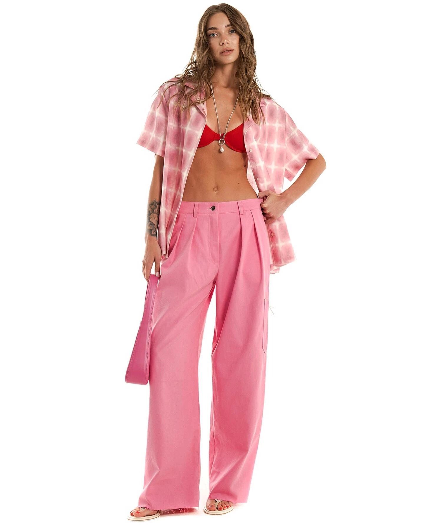 - Alice K – рожевий корсет з деніму з атласними бретелями та штани палаццо;