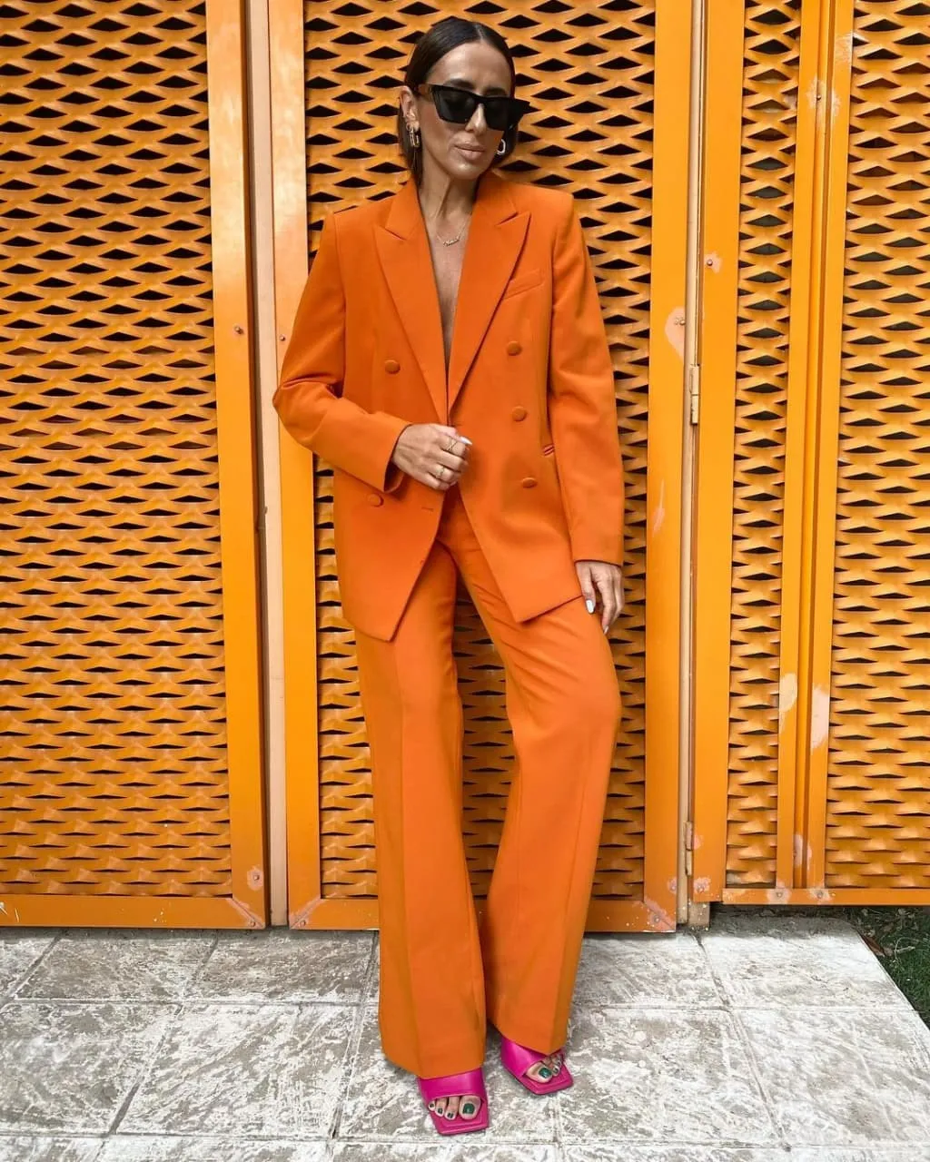 Незмінний атрибут осені – костюм. Це зручний та універсальний тандем жакета та штанів, адже їх можна носити як разом, так і створювати образи з окремих деталей. Надавайте перевагу маскулінним оверсайз моделям у яскравих відтінках. Також будуть актуальними костюми-трійки.
