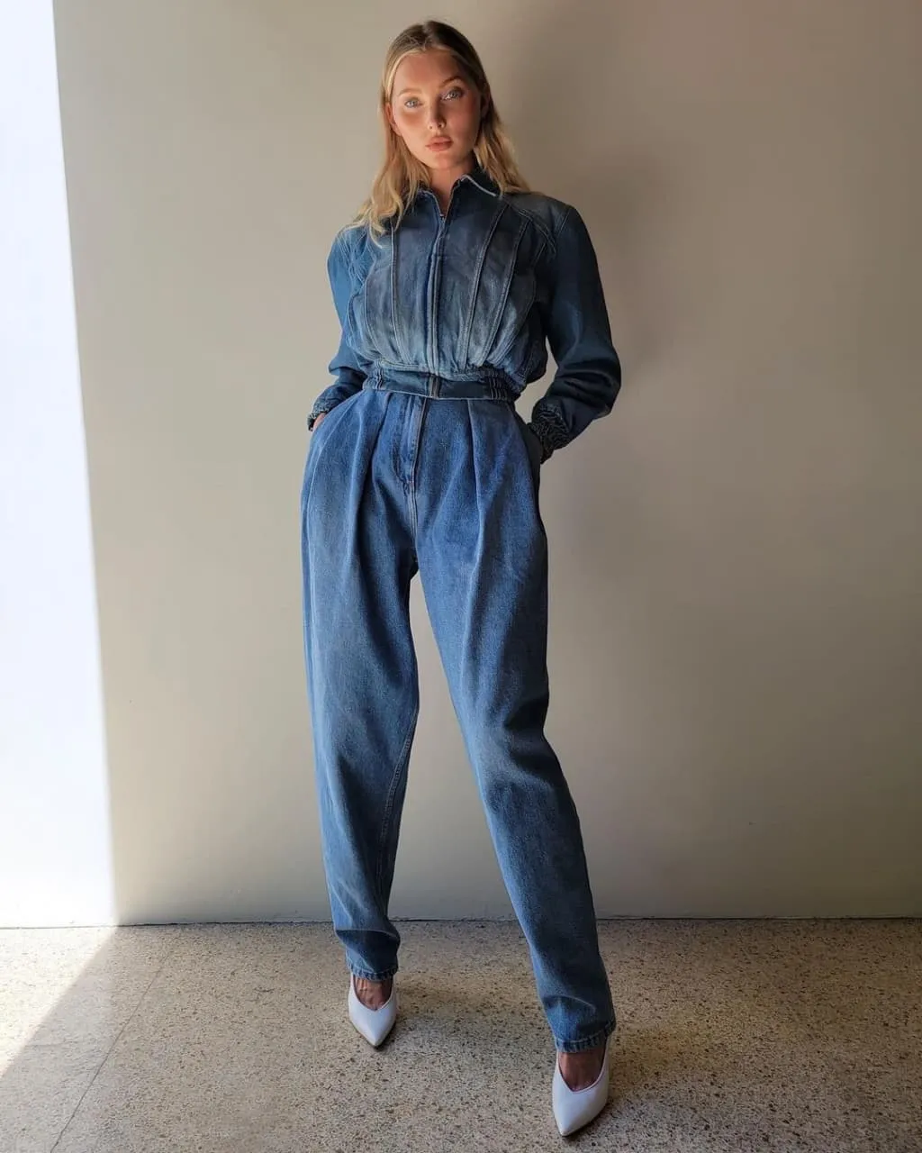 Ще один символ осіннього сезону – денім. Цей матеріал часто асоціюється з дощовою погодою, адже ідеально носиться саме у цю пору. Інстаграм-інфлюенсерки стилізують джинсові комбінезони та костюми в осінніх образах.