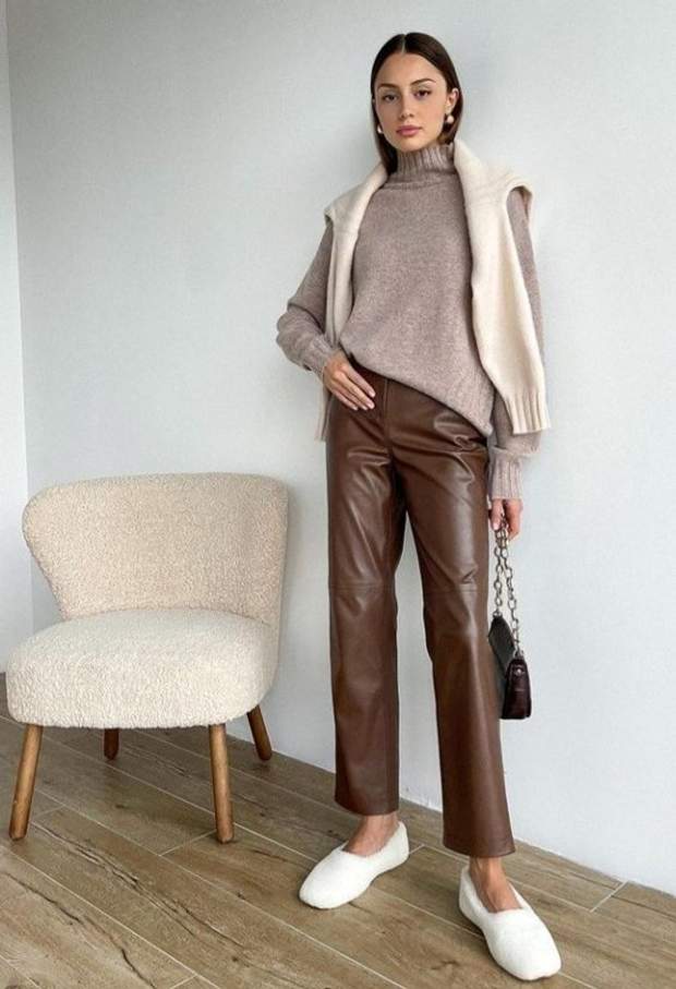 Брюки из экокожи уже давно стали неотъемлемой частью нашего гардероба. Модные эксперты даже говорят, что кожаные штаны стали определенной базой, поскольку отлично подходят под любую обувь и наряды.