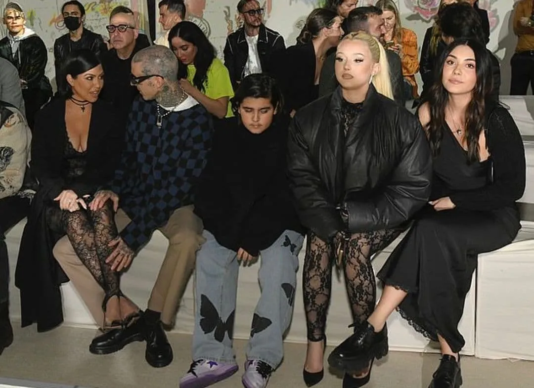 Влюбленная пара взяла с собой на показ детей. В первом ряду с ними сидел сын Кортни 12-летний сын Мейсон Дисик, 16-летняя дочь Трэвиса Алабама Луэлла и 22-летняя падчерица Атиана Де Ла Хойя.