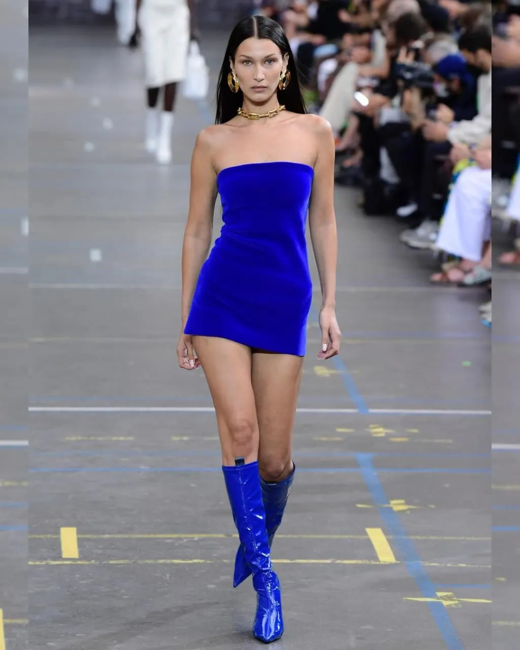 Креативный директор бренда Off-White Вирджил Абло представил впервые за 16 месяцев свою коллекцию в начале июля. К сожалению, это было последнее появление дизайнера перед зрителями в конце показа. Особое внимание бренд сосредоточил на цвете электрик, который представила Белла Хадид.