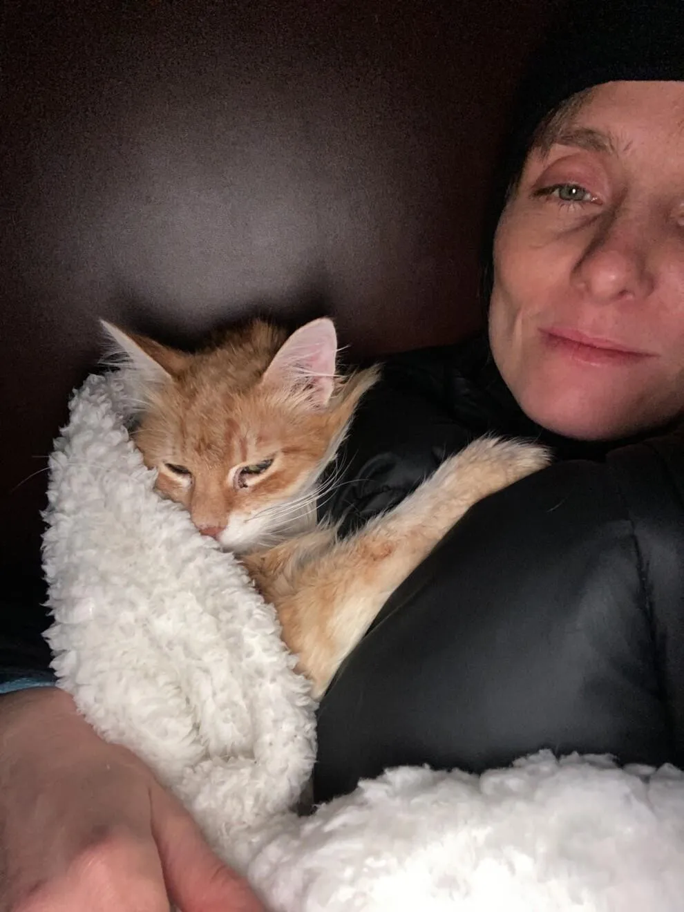 Чудом на дороге появился фургон, поэтому Юлия вместе с собакой быстро вскочила. Парень с котами также догнал автомобиль и запрыгнул в кузов. До точки назначения пара добиралась еще 5 часов. Котики пробыли все время втроем в переноске, без возможности сходить в туалет. Но даже когда Юлия добралась до безопасного места, коты и дальше сидели кучкой в переноске и вышли не сразу.