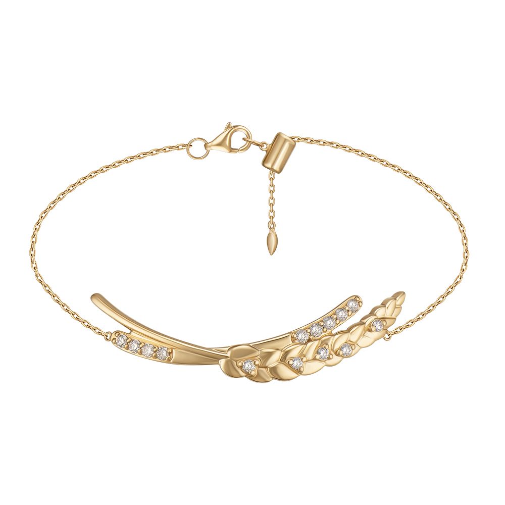 Серьги воспроизведены в форме круга, слегка изогнутых линий, а колосок на браслете повторяет изгиб руки и идеально ложится на запястье.