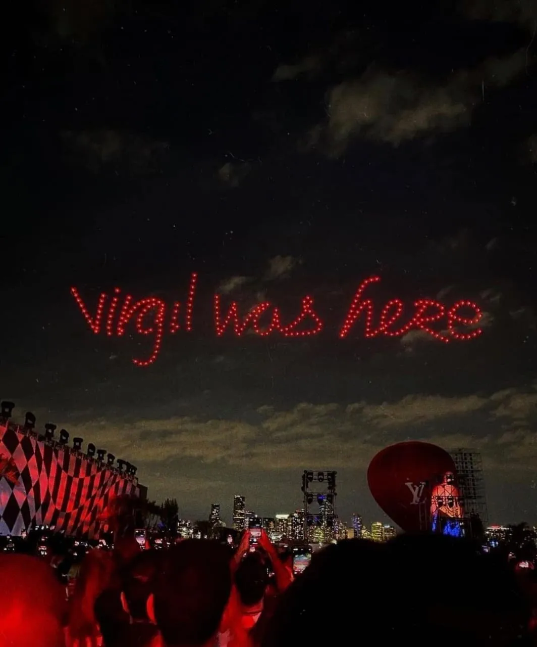 В конце шоу запустили салют с инициалами VA, а затем и надпись Virgil was here. Особой декорацией стал огромный монумент Вирджилла.