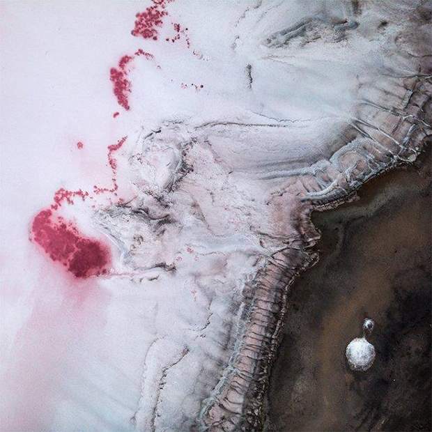 "Коли вперше бачиш рожеві соляні озера в Херсонській області в Україні, створюється враження, що дивишся на іншу планету. Влітку мікроскопічні водорості впливають на колір води, через що вона стає червоно-рожевою. Якщо дивитися на все це зверху, вид відкривається просто неземний, тому я знімав з дрона, щоб передати всю атмосферу цього незвичайного місця", – розповів митець.