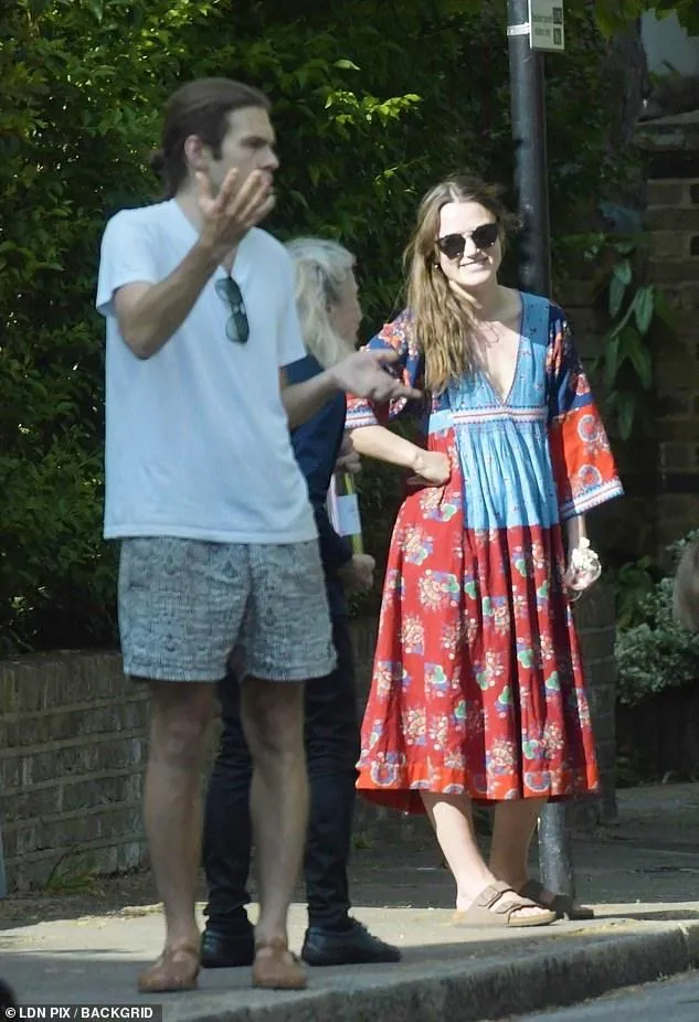 Пару вдалося сфотографувати під час розмови з сусідами поблизу їхнього маєтку в Лондоні. Для прогулянки акторка обрала яскраву сукню червоного кольору з квітковим принтом вільного крою, яка ретельно приховувала її фігуру. Кіра Найтлі одягла зручні коричневі босоніжки без підборів та не забула про сонцезахисні окуляри. Образ її чоловіка Джеймса Райтона натомість не викликав жодних здивувань – біла футболка та сірі шорти з анімалістичним принтом.