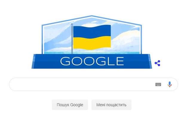 На святковому дудлі від Googlе зображений анімований прапор України, який рухається неначе від поривів вітру.