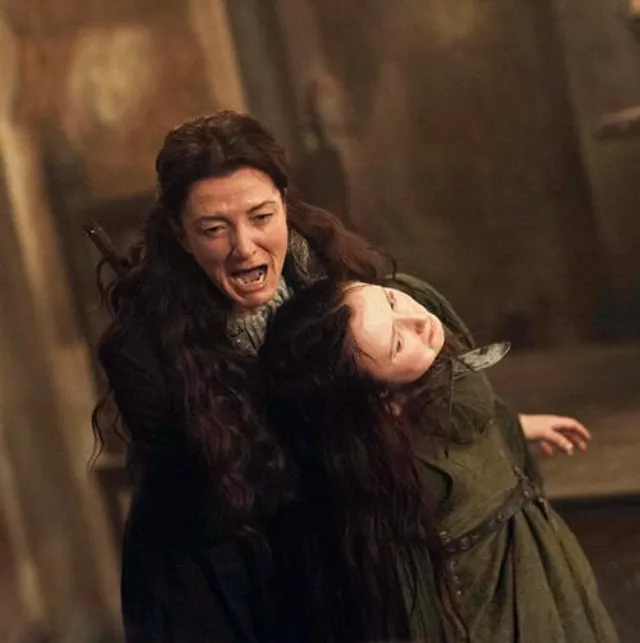 8. Також щодо Червоного Весілля, у книгах та в серіалі, героїня Кейтелін Старк загинула від рук Фреїв, які перерізали їй горло.