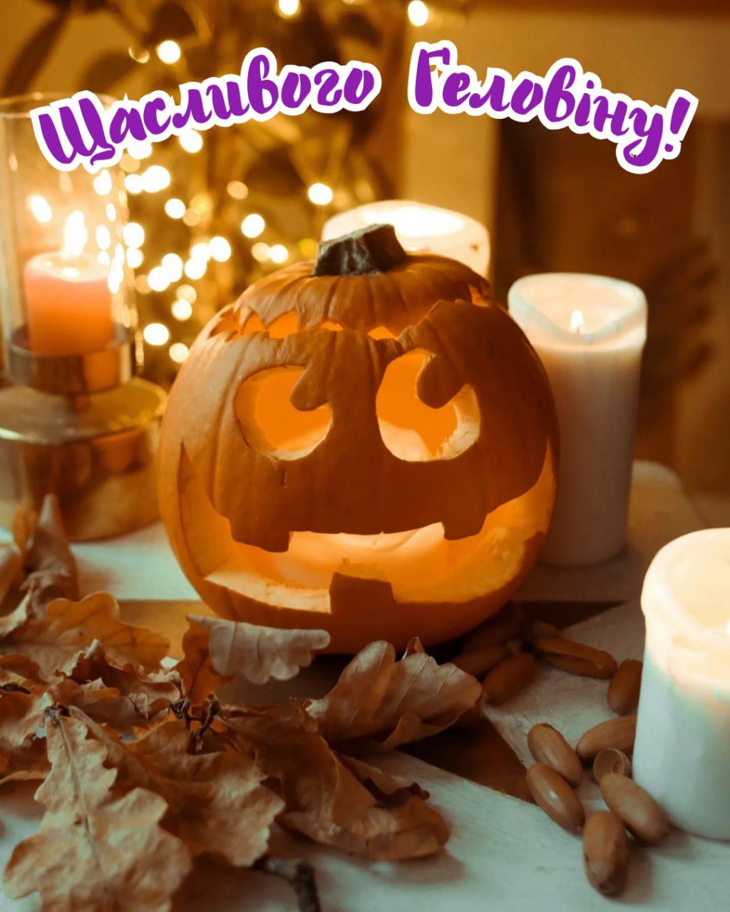 Вітаю з Геловіном! Бажаю відпустити на волю всі страхи, веселитися до втрати пульсу, сміятися до сліз, танцювати до упаду і дуріти до жаху! А ще бажаю страшної краси, кошмарного везіння та потворно липучої удачі!