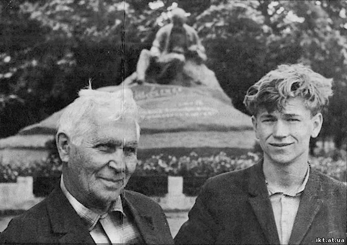 Іван Кавалерідзе і Данило Кулиняк біля пам'ятника Шевченку в Ромні