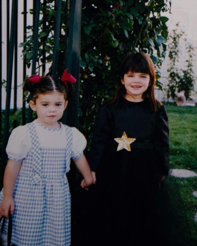 На особистій сторінці в інстаграмі Кайлі опублікувала архівні дитячі світлини, на яких вона позує разом з сестрою Кендалл. На одному фото вони стоять та тримаються за руки. Кайлі одягнена в білу футболку та блакитний сарафан у клітинку. Її волосся зав'язане у два хвостики червоними бантиками. А Кендалл позувала в спортивному костюмі з зіркою.