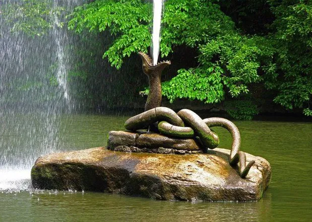 Він влаштований посеред Нижнього озера. Стовп води заввишки до 20 метрів виривається з широко розкритої пащі гігантської змії.