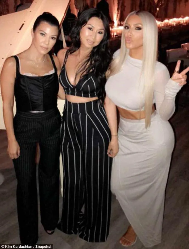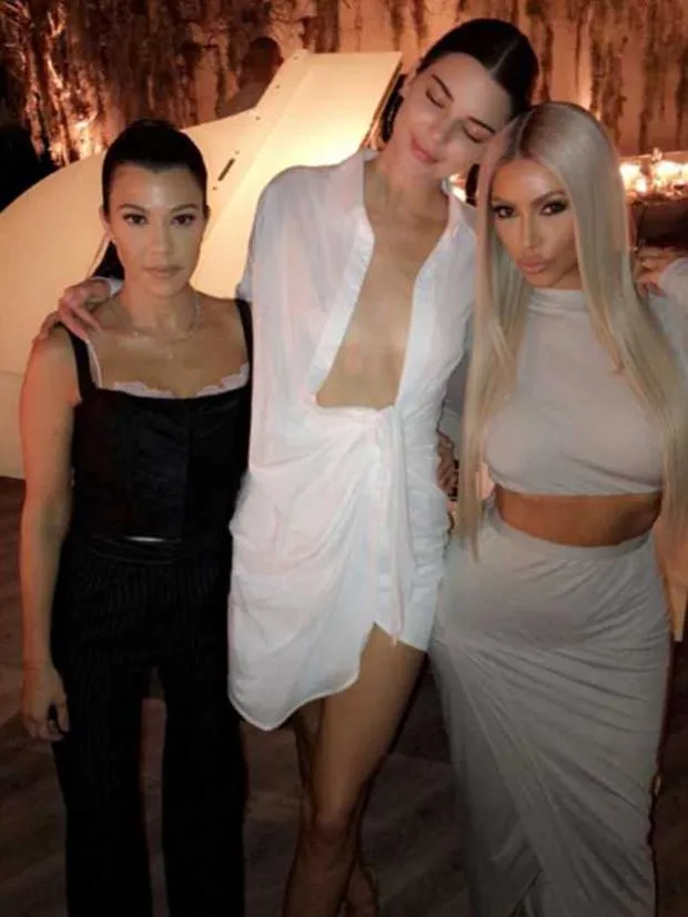 Дружина Каньє Веста – Кім Кардашян, у свою чергу обрала вже традиційний сексуальний образ із короткого топу і довгої спідниці сірого кольору. Сестра Кім та Кендалл – Кортні Кардашян одягнула класичний чорний комбінезон з білими вставками.