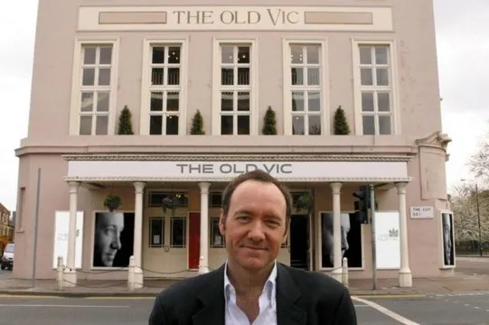 Кевін Спейсі на тлі театру "Олд Вік", де він був художнім директором з 2004 по 2015 рік