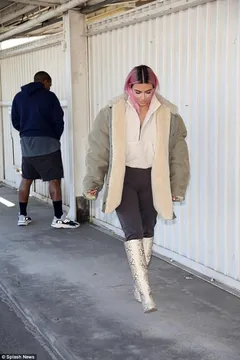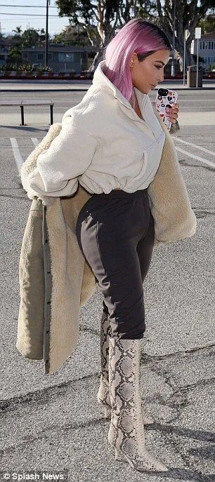 Також зірку підловили папарацці у Лос-Анджелесі. Кім в об’ємній куртці та високих чоботах прогулювалася із своїм чоловіком, репером Каньє Вестом.