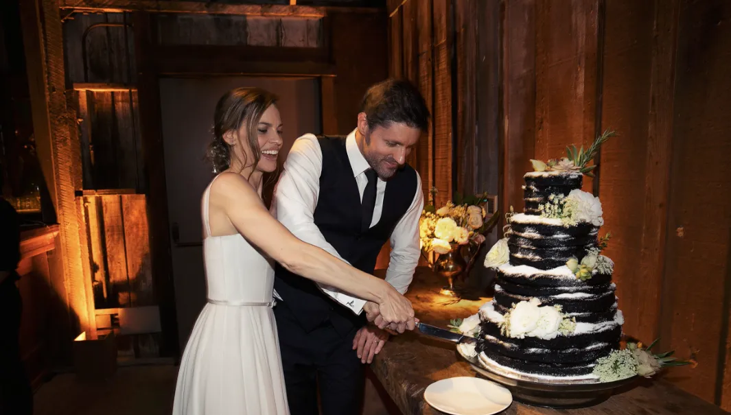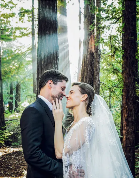 За інформацією Vogue, церемонія весілля відбулась в національному парку Каліфорнії – Редвуд. Спершу Хіларі Суонк та Філіп Шнайдер обмінялись клятвами серед 800-річних дерев, після чого запросили гостей на святкову вечерю.