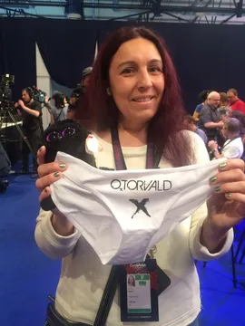 На підтвердження своїх слів він спустився зі сцени, щоб обійняти журналістку, а також зробив їй доволі неоднозначний подарунок.