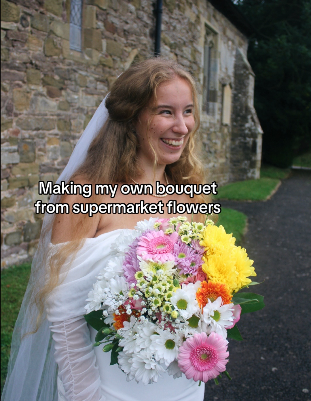 Влюбленные решили организовать свадьбу самостоятельно и не заморачиваться изысканным декором и дорогим ужином. Рианна нашла свое платье в секонд-хенде за 13 фунтов стерлингов. Платье было из простой белой ткани и на длинный рукав. Дополнила образ невеста длинной фатой, ожерельем из жемчуга и букетом из цветных цветов, который она приобрела в супермаркете.