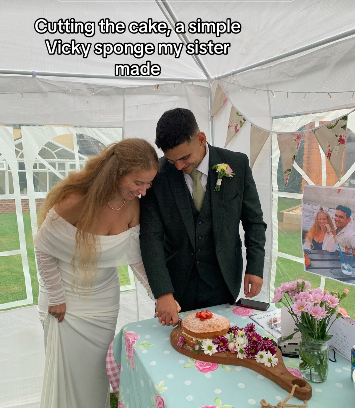 На свадьбу пригласили только 15 гостей – самых близких людей для молодоженов. Свадебный торт испекла сестра невесты – это был обычный бисквит, украшенный клубникой и перемазанный кремом. Вечером они все вместе ели хот-доги у костра и зажигали бенгальские огоньки.