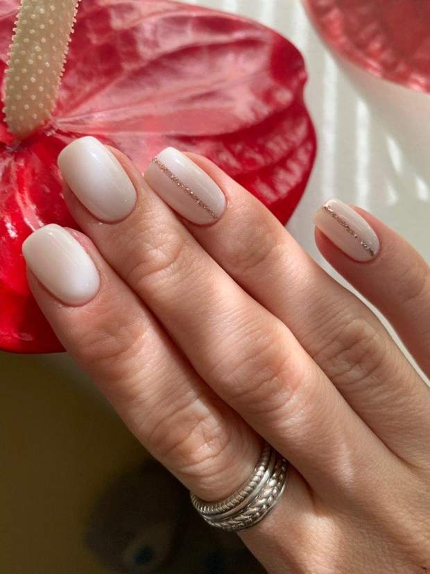 "Найчастіше дівчата обирають нюдові кольори. Це може бути молочний, який є трендом цього сезону, або ж відтінок, як основа під френч. Дуже часто замовляють французький манікюр. Також актуальним є червоний – це така класика, яка завжди виглядатиме елегантно. Або ж нюд, але з додатковим декором – стрічками, блискітками на одному чи двох нігтях. Вони виглядатимуть мінімалістично, але водночас доповнюватимуть той манікюр, додаючи якоїсь родзинки", – розповіла Юля Хитра.