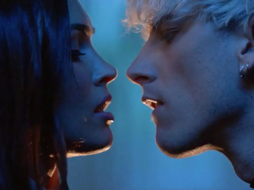 Режисер стрічки Рендолл Емметт показав кадр зі світського заходу, на якому закохані не приховували своїх почуттів. Меган Фокс у коротких чорних шортах, топі та на підборах пристрасно пригорнув до себе репер, який був одягнений не менш зухвало. На ньому вбрання total black – завужені штани, футболка та лаковані черевики на шнурівці, а епатажний look доповнили ланцюжки на шиї.