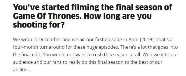 Просто даю вам знати, що ця цитата про дату прем'єри "Гри престолів", яку я нібито дала, не відповідає реальності і була взята з інтерв'ю, яке у мене брали кілька років тому,