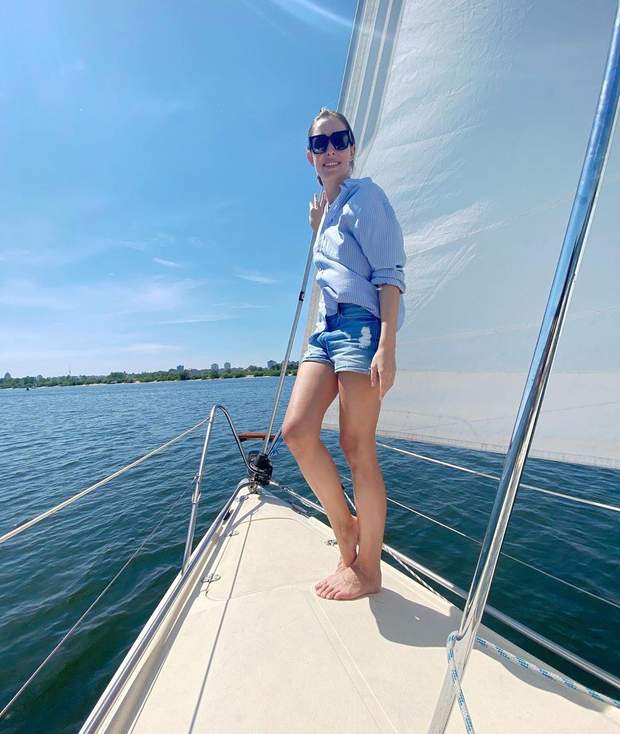 Популярна телеведуча повернулася до роботи на телебаченні після тривалого карантину, проте вміло поєднує кар'єру з відпочинком. Катя Осадча провела день на палубі яхти разом з чоловіком Юрієм Горбуновим. Вона постала у літньому образі, засвітивши стрункі ніжки в коротких шортах.