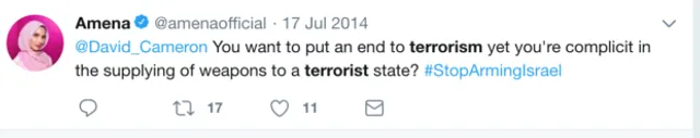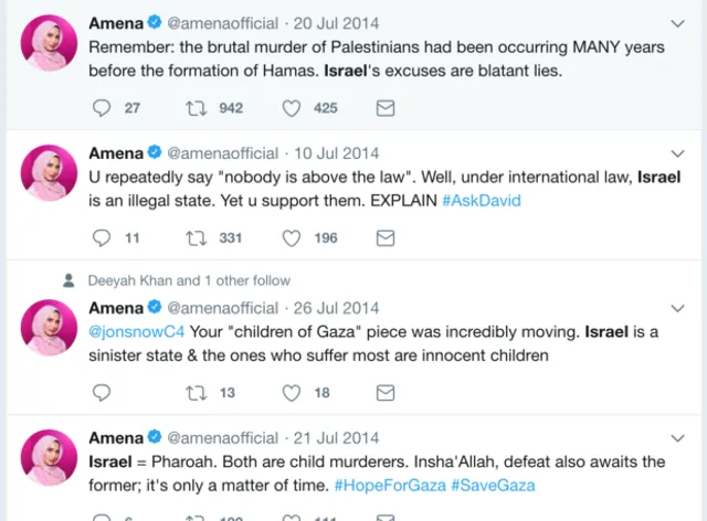 У той же період блогер зверталася до тодішнього прем'єр-міністра Великобританії Девіда Кемерона, якого звинувачувала в тому, що він підтримує "терористичну державу".