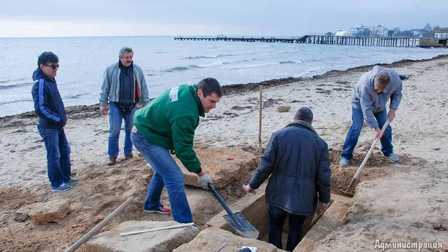 "Випадковий перехожий побачив на піску край великої кам'яної плити. Він зацікавився знахідкою і повідомив про неї в Євпаторійський краєзнавчий музей. Працівники музею обстежили рукотворний кам'яний ящик довжиною один метр двадцять сантиметрів", – йдеться в повідомленні.