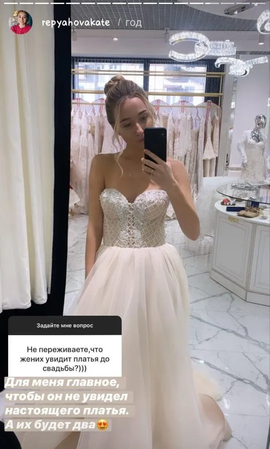 Катерина Реп'яхова у весільній сукні / Screenshot / Instagram / @repyahovakate