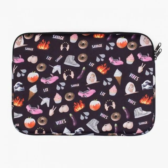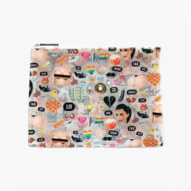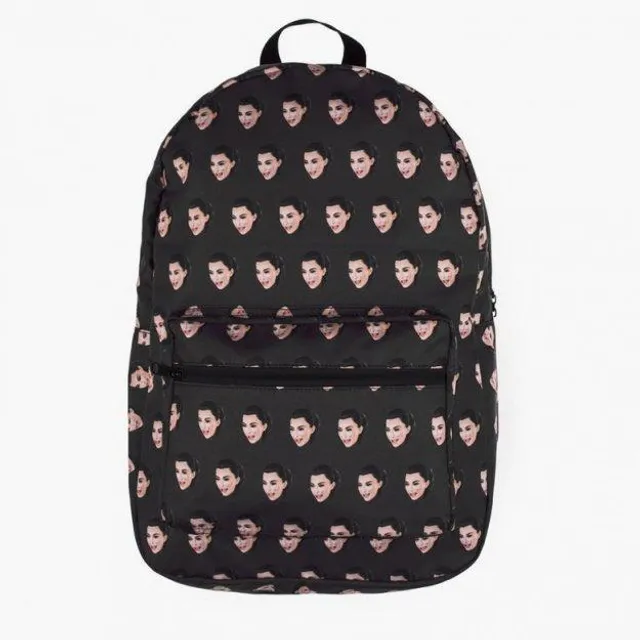 У нову колекцію увійшли рюкзак і килимок для миші з розтиражованим обличчям страждаючої Кім, кулькова ручка з її знаменитим "голим" селфі, переносна зарядка у вигляді її сідниць, чохол для ноутбука, ланчбокс, флешки і стікери.