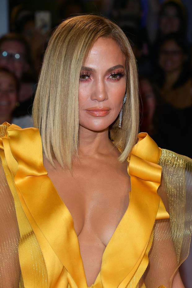 Доповнили образ акторки блискучий клатч у вигляді пачки доларів і металеві босоніжки на шпильках. Неочікуваною стала зміна іміджу співачки: новоспечена блондинка Джей Ло позувала перед фотографами з асиметричною стрижкою боб.