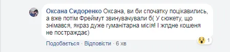 У коментарі до цієї публікації співробітник "Нового каналу" Оксана Сидоренко написала, що в сюжеті, який знімався, "дуже гуманітарна місія".