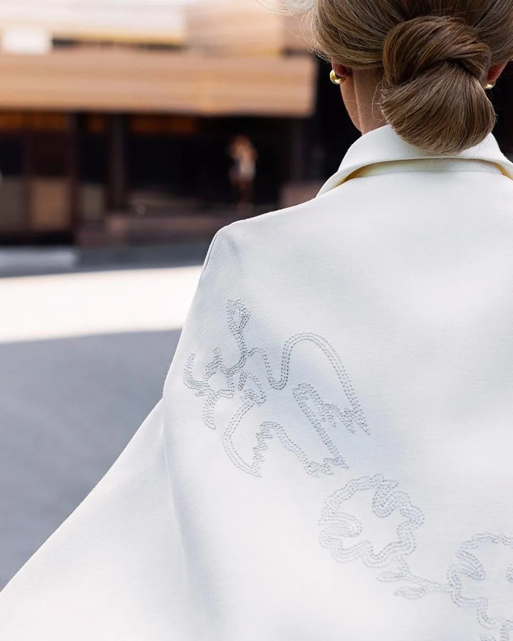 "Команді з 7 майстрів знадобилися 184 години для виготовлення цього ансамблю – сукні та жакету з кейпом із шовково-вовняного крепу молочного кольору. Для оформлення рукавів сукні та кейпу три майстри з вишивки використовували традиційні українські артизанальні техніки, адаптуючи флористичні й анімалістичні мотиви з килимів Сумщини та Полтавщини початку XIX століття", – поділився Артем Климчук.