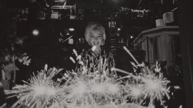 Також є фото, на яких кінозірка купається в басейні оголеною, а також світлина, що зафіксувала момент, коли з нагоди дня її народження Мерилін піднесли торт прикрашений бенгальськими вогнями.
