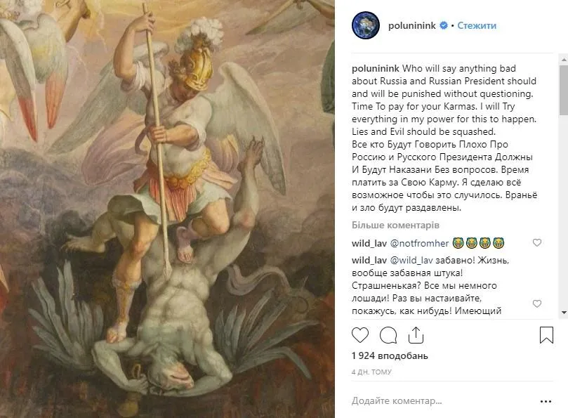 Публікація Сергія Полуніна / Скріншоту / Instagram / @poluninink