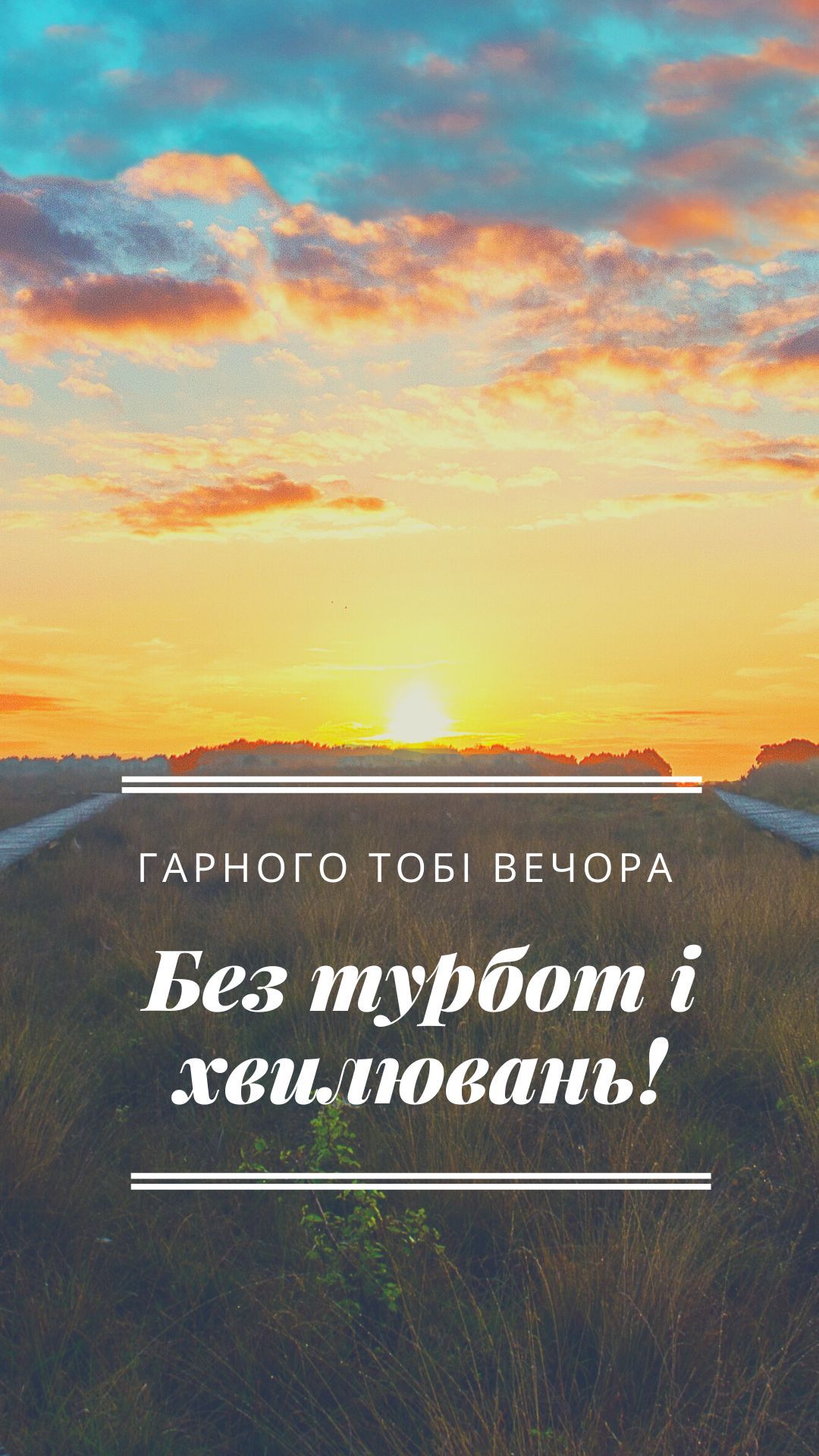Нехай тіло нарешті відпочине, а душа здійметься від блаженства. Бажаю насолодитися красивим вечірнім заходом, прийти в себе і відновитися після важкого дня.
