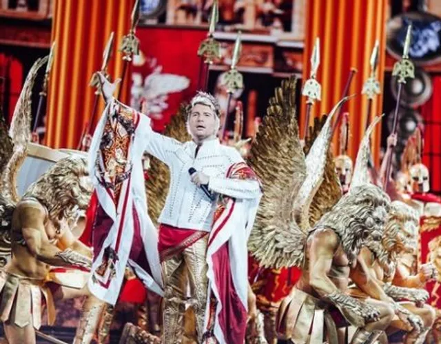 Окрім імперських костюмів співаків, "шику" виступу додавали декорації на сцені – там було багато золота та царських деталей.