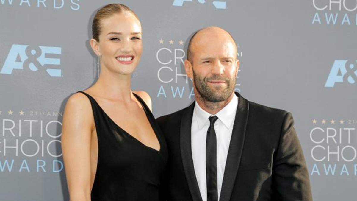 На фото Розі позує із своїм коханим – 51-річним актором Джейсоном Стетхемом та однорічним сином Джеком.