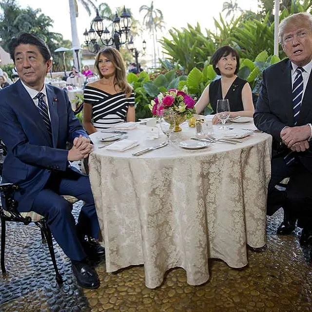 Відомо, що Дональд Трамп разом з чарівною дружиною Меланією мали офіційну зустріч з прем'єр-міністром Японії Сіндзо Абе. Високопосадовець прибув до штату Флорида у супроводі своєї дружини Акі Абе. Гостювали делегати з Японії у президентському маєтку Мар-а-Лаго. Окрім обговорення політичних питань, всі учасники офіційної зустрічі прогулялись територією маєтку та пообідали в затишному ресторані.