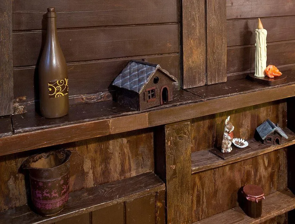 Что интересно, коттедж сделан из 1,5 тонны шоколада. Так, съедобными является всё: стены, крыша, камин, люстра, комод, часы, чашки и книги. Кроме того, рядом с домом находятся также шоколадные пруд и клумба.