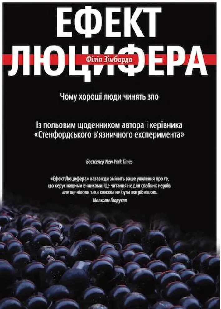 "Ефект Люцифера. Чому хороші люди роблять жахливі вчинки" – книга про відносність категорій, якими мислить суспільство, часто не усвідомлюючи, як легко правилами і шаблонами вбити особистість.